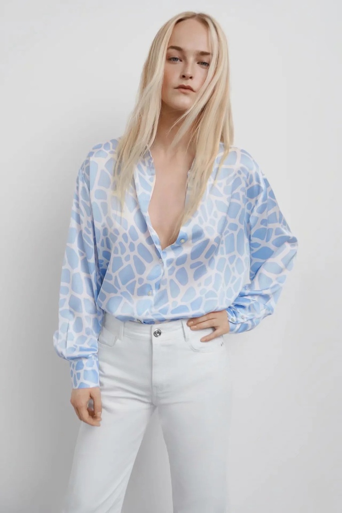 اسم القماش: قطن المادة الرئيسية: بوليستر بنسبة 71% إلى 80% المادة الثانوية: قطن بنسبة تصل إلى 10% البطانة: قطن (بنسبة لا تتجاوز 10%) النمط: أزياء الشارع (Streetwear) النقشة: مطبوعة نمط التصميم: قميص على طراز الكارديغان طول الأكمام: أكمام طويلة الصناعة: تركيب/تطريز مجمّع نوع القَصّة: واسعة نمط الإغلاق: بأزرار أمامية (single-breasted) نوع الياقة: ياقة على شكل V شكل الكم: كم عادي عناصر التصميم: طبعات أنيقة محتويات العبوة: 1 × قميص نسائي