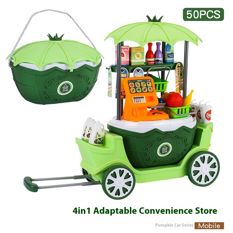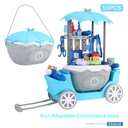 عربة لعب أطفال مع مطبخ ودولاب وألعاب طبيب وآيس كريم