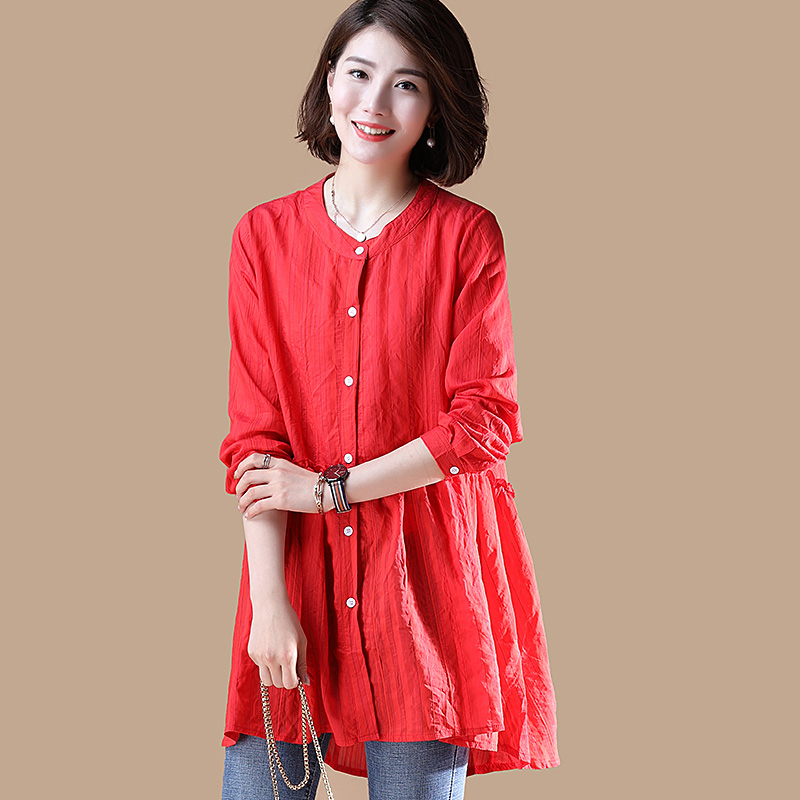 قميص نسائي مخطط متوسط الطول مع تأثير تنحيف