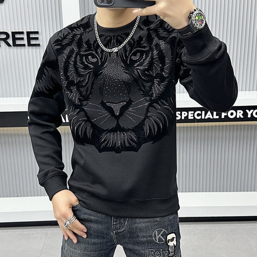 هودي رجالي مخمل مخطط بأكمام طويلة مع رقبة دائرية