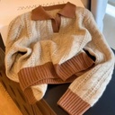 Color: Brown Popular elements: color matching Style: pullover Main fabric composition: Polyester (polyester fiber) Wearing style: pullover Sleeve length: long sleeve Craft: collage/stitching