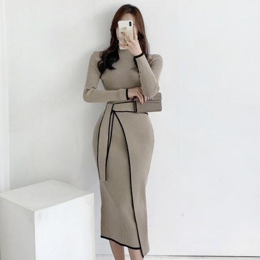 Women's Knitted Long Sleeve Dress with a Slim and Elegant Bodycon Skirt Design