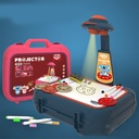 Material: Plastic Function: Sound and light projection writing board Packing method: suitcase Color: blue, red Applicable age: children (4-6 years old) 33*28.5*8.5CM 1*suitcase+6*projection sheet+1*bracket+1*blackboard eraser+6*coloring pen