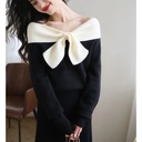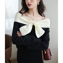 Design Niche Off-shoulder Bow Top Women's Spring New Black Knitted Chic Inner Wear T-shirt