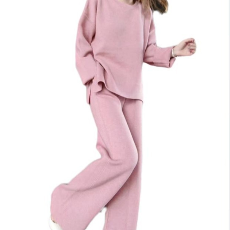Fashionable Western Style Age-reducing And Thin, Knitted Two-piece Wide-leg Pants Suit Women