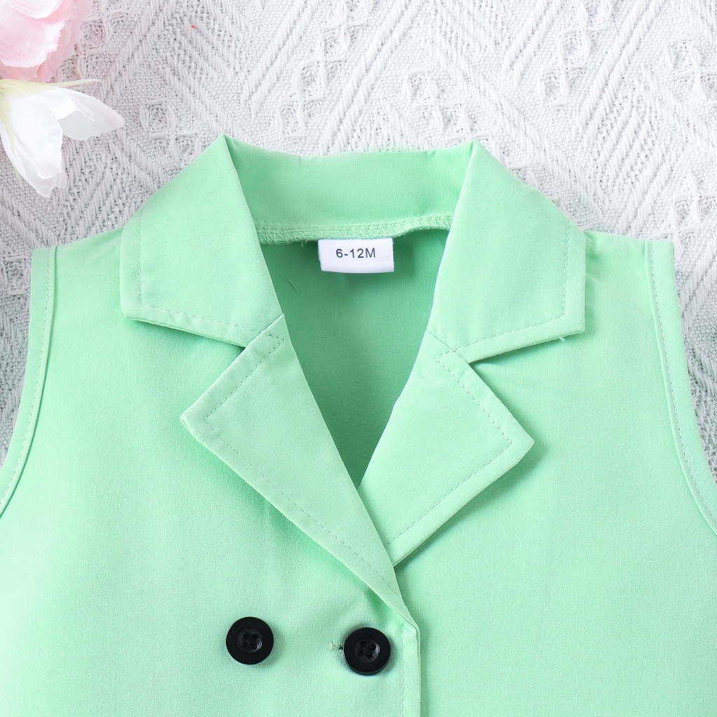 Pattern: solid color Color: pink, green Gift Box content: Clothing Suitable height: 6-12M,12-18M,18-24M,2-3T,3-4T Suit type: skirt suit Thickness: ordinary Fabric name: Cotton Closed style: pullover Main fabric composition: Polyester Fiber (polyester) Number of suite: two-piece set Applicable Gender: Female Hooded or not: no Hooded Elements: suit, trendy, candy, European and American Suitable season: Summer Sleeve length: sleeveless Style: European and American