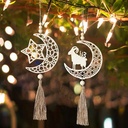 Usage: Home decoration Colors: Tassel Moon (1 set), Tassel Star (1 set), Wooden Lantern (set of 3) Material: Mixed wood Packing List: 2 × Tassel Moon, 2 × Tassel Star