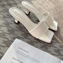 Closing method: one pedal Pattern: plain Style: European and American Color classification: black white yellow Heel height: high heel (5-8cm) Upper height: low (height is less than 10cm) Heel style: thick heel Sole Material: Rubber Lining material: PU Back help: back empty Side help: side air Shoe making process: Adhesive shoes Insole material: PU Style: one-line Help surface material: PU Size: 35 36 37 38 39 40 A pair of slippers