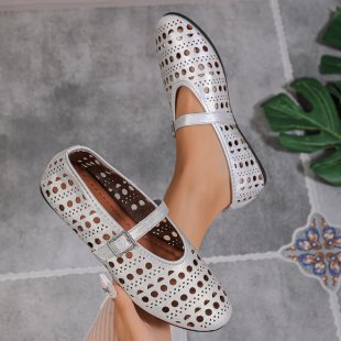 Women's Low-cut Buckle Hollow-out Round Toe Flat Shoes