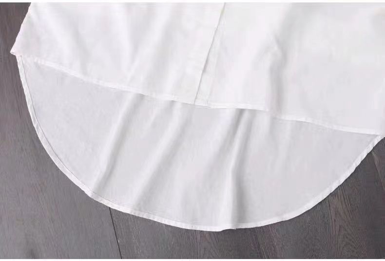 Pattern: solid color Fabric name: Cotton Color: white, blue, pink, yellow Sleeve type: shirt sleeve Main fabric composition: Cotton Size: S,M,L,XL,2XL,3XL Version: Loose Length: Extended (100cm Style type: temperament commute Sleeve length: long sleeve Popular elements: splicing Style: Cardigan Style: urban style Craft: collage/stitching