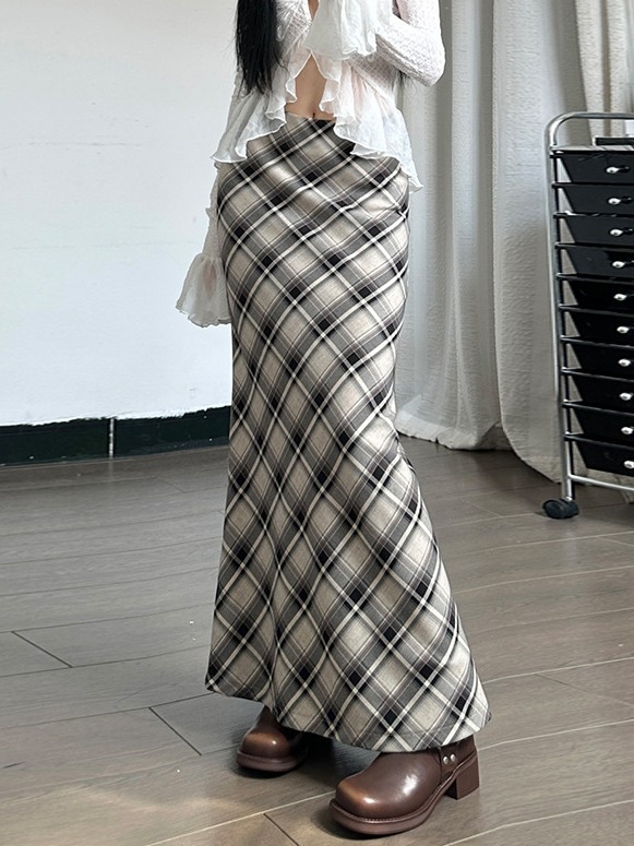 Pattern: stripes/Plaid Fabric name: Polyester Skirt type: fishtail skirt Color: Apricot Size: S,M,L Popular elements: zipper Style: European and American style
