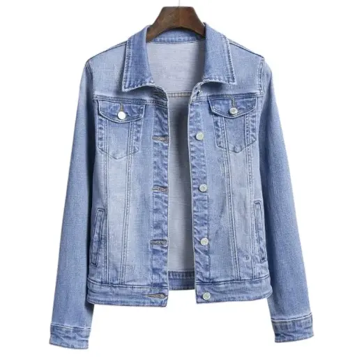 Women’s Loose Fit Distressed Denim Jacket with Long Sleeves