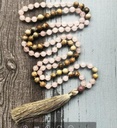 المادة: أحجار كريمة المعالجة: يدوي الصنع مناسب لـ: للجنسين مادة القلادة: مرصعة بأحجار كريمة مختلطة نوع السلسلة: سلسلة بحلقة دائرية العناصر التصميمية: شكل دائري الطول: 71 - 80 سم عدد الحبات: 108 حبات التعبئة: 1 × مسبحة