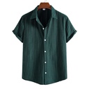 قميص رجالي صيفي بأكمام قصيرة ونقشة خطوط ضيقة، مصنوع من ألياف بوليستر خفيفة بخيط 50، بتصميم عملي يناسب الإطلالات الكاجوال.