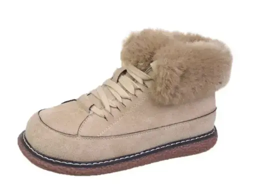 أحذية شتوية قصيرة مبطنة بالفرو السميك ومزودة بحشوة قطنية دافئة