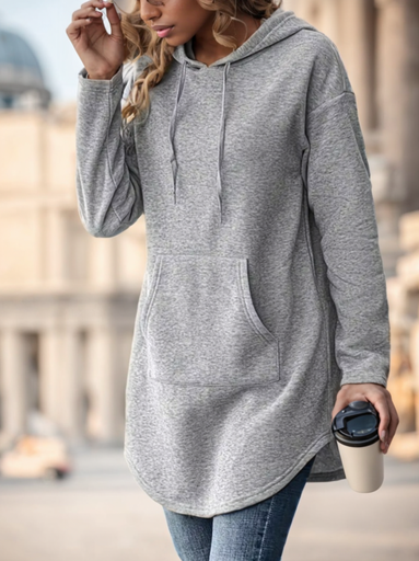 Solid Color Hooded Lacing Mid-length Knitwear Sweater