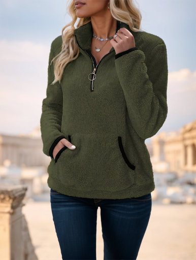 Women’s Pullover Sweatshirt Blouse with Color Block Design