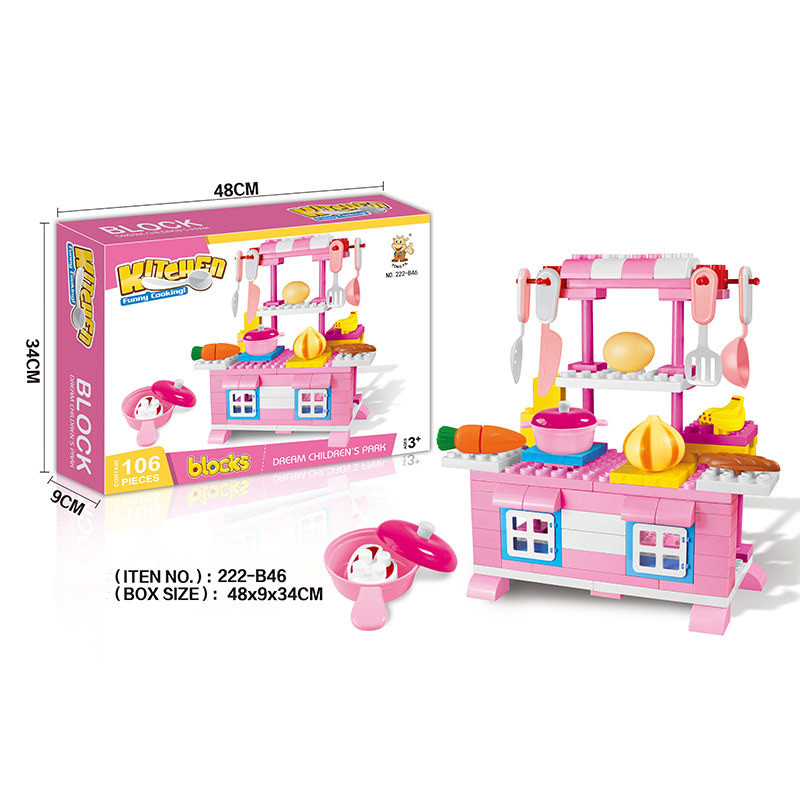 Children's building blocks creative DIY house toy scene kitchen assembled building blocks large particle wholesale spot Material: Plastic/plastic Packing: Color box Plastic material classification: ABS Type of plastic building blocks: Large particles Number of building blocks (tablets) : 50-100 pieces (tablets) Net weight of building blocks: 2kg 3C configuration category: Other toys under 14 years of age Suitable age: Children (4-6 years old) Building Blocks*1
