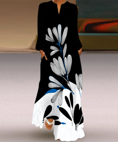 Pattern: Print Process: digital printing Skirt length: long skirt Collar: V-neck Sleeve Length: Long Sleeve Main fabric composition: polyester fiber Size: Unit:cm 1. Asian sizes are 1 to 2 sizes smaller than European and American people. Choose the larger size if your size between two sizes. Please allow 2-3cm differences due to manual measurement. 2. Please check the size chart carefully before you buy the item, if you don't know how to choose size, please contact our customer service. 3.As you know, the different computers display colors differently, the color of the actual item may vary slightly from the following images. Dress*1