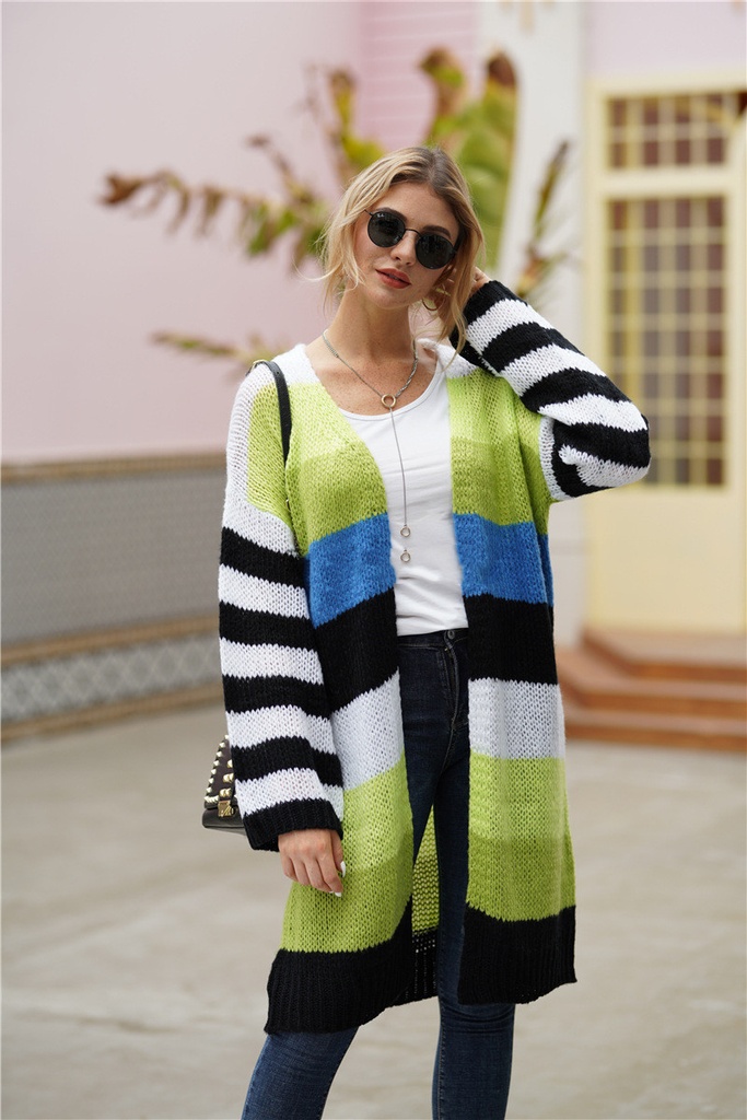 Supply category: spot Fabric name: Knitting Main fabric composition: Acrylic The content of the main fabric ingredient: 100% Style: OL commuting Pattern: Stripes Yarn thickness: ordinary wool Sweater technology: knitting Thickness: moderate Style: cardigan Combination form: single set Edition type: Loose Length: ordinary style (50cm<length≤65cm) Collar type: round neck Sleeve length: long sleeve Sleeve type: conventional sleeve Craft: collage/splicing Color: green Suitable age: 25-29 years old Clothing style: Europe and America Style type: temperament commuting Size: S/M/L/XL 1. Asian sizes are 1 to 2 sizes smaller than European and American people. Choose the larger size if your size between two sizes. Please allow 2-3cm differences due to manual measurement. 2. Please check the size chart carefully before you buy the item, if you don't know how to choose size, please contact our customer service. 3.As you know, the different computers display colors differently, the color of the actual item may vary slightly from the following images. Women's sweater*1
