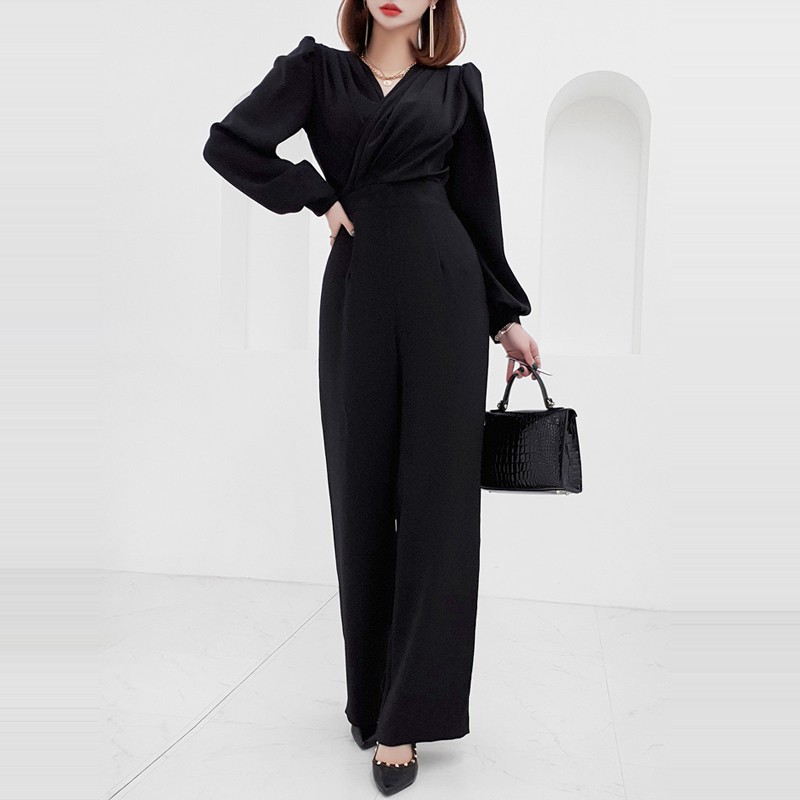 V-neck Slim-fit Temperament Jumpsuit Women's Waist Slimming Professional Jumpsuit