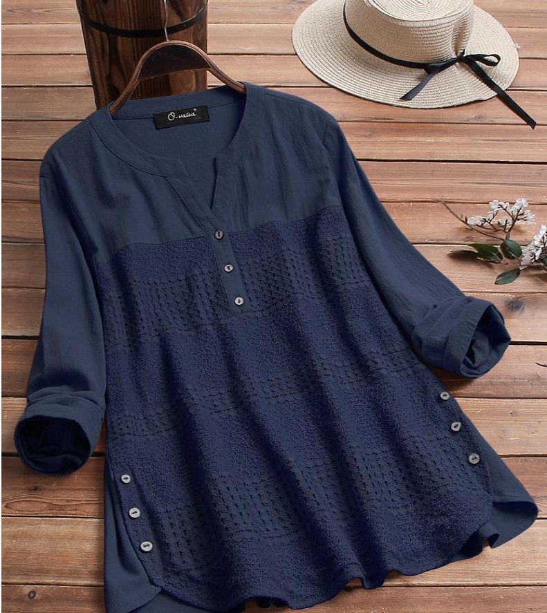 Women's Casual Long Sleeve Shirt with Button Closure and Lace Embroidery