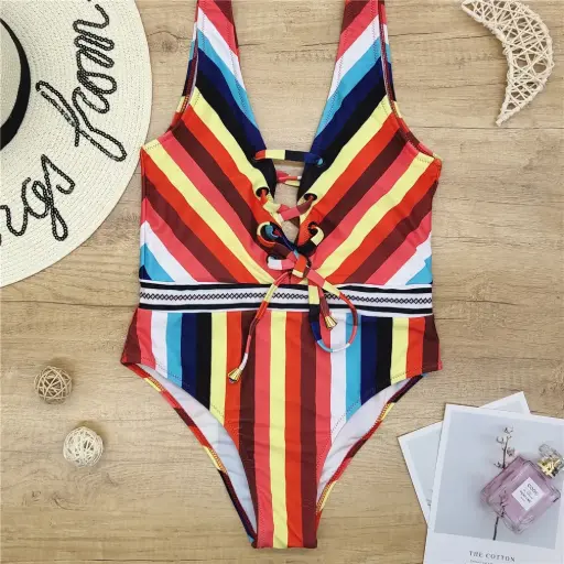 Lace-up one-piece swimsuit